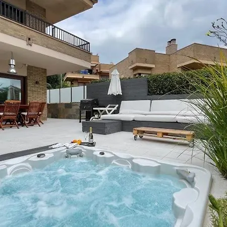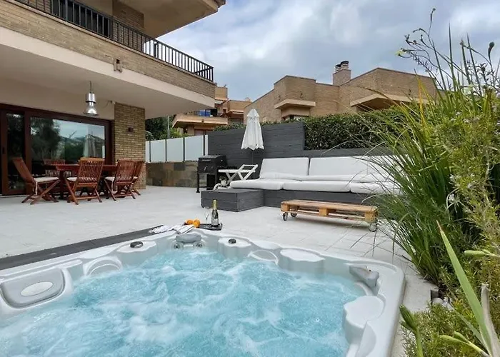 Located a mere 6 minutes' walk from Modernist Cemetery, the 3-bedroom Residencial Bella Donna Lux House, Jacuzzi Y Piscina Privada Villa comes with a seasonal outdoor pool, a Jacuzzi. Featuring a terrace, the beachfront villa is situated about 25 minutes' walk from Santa Cristina Hermitage.
